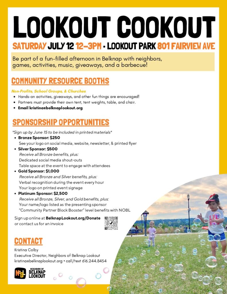Join us at the Lookout Cookout by Neighbors of Belknap Lookout on Saturday, July 12th from 12-3pm at Lookout Park!
