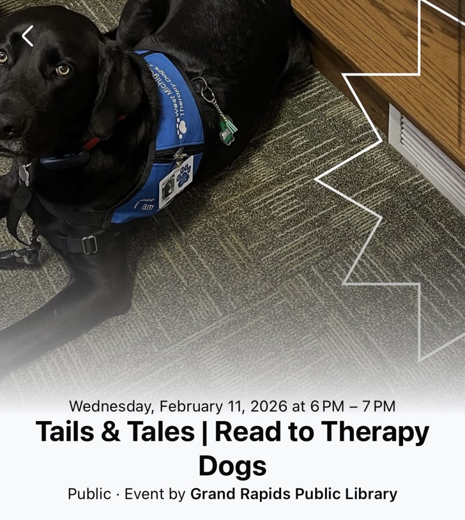 Reading doesn’t have to be ruff, bring your kids and let them read to licensed therapy dogs!